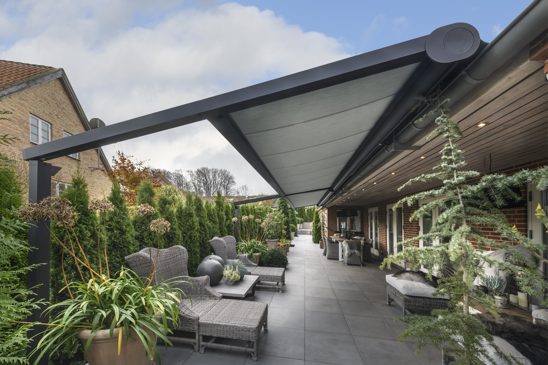 En pergola er en populær løsning til dig, der ønsker en mere funktionel og indbydende terrasse. Den faste konstruktion giver mulighed for et overdækket uderum, hvor du kan få læ og skygge, samtidig med at du bevarer følelsen af at være ude. En pergola-markise kan tilpasses huset og omgivelserne, så du får en terrasseoverdækning, der passer præcist til dit hjem.