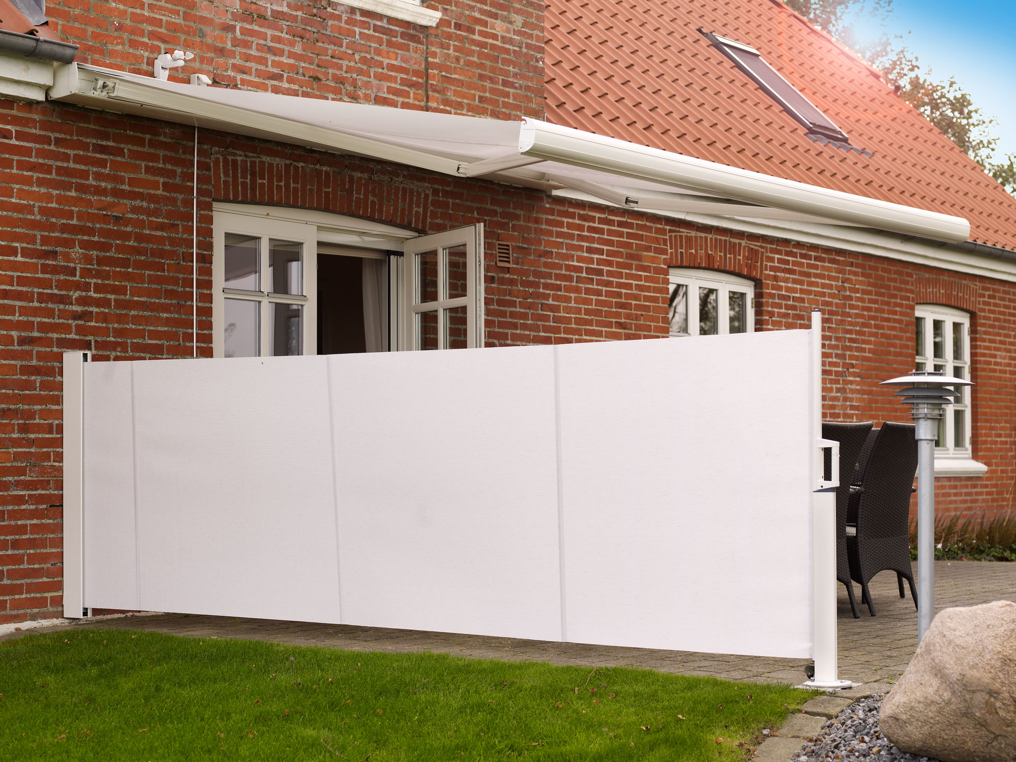 En sidemarkise er en enkel måde at skabe læ, privatliv og afskærmning på terrassen eller altanen. Den kan trækkes ud, når du har brug for den, og rulles ind igen, når området skal stå åbent. Det gør sidemarkiser ideelle til boliger, hvor man ønsker fleksibel afskærmning uden at fylde meget.